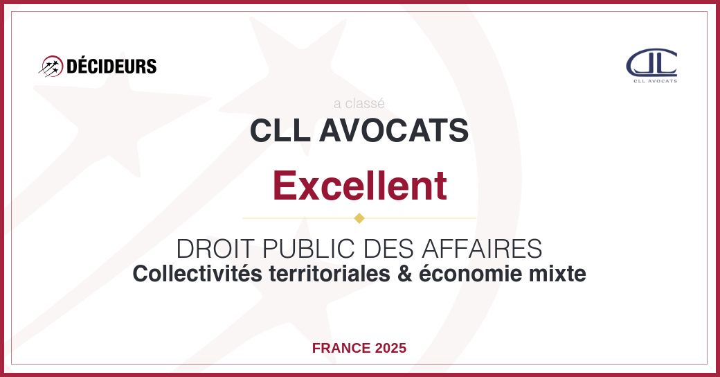 Dès sa création, le cabinet CLL Avocats s’est imposé comme un acteur majeur en droit des collectivités territoriales, ainsi que cela ressort de son classement par le guide Décideurs Magazine dans la catégorie « Excellent » en matière de « Collectivités territoriales & économie mixte ».